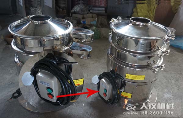 DH-400-1S型藥粉振動篩是大漢公司根據客戶要求及客戶現場的情況,在大漢原有機器的基礎上加裝不銹鋼防護罩、啟停裝置和電源線延伸加長到5米。